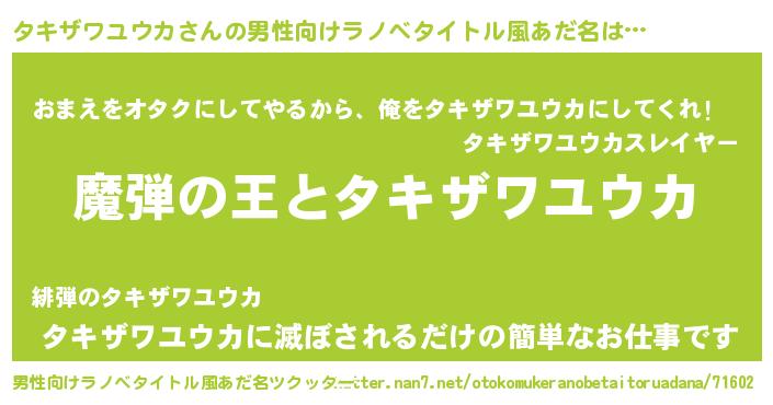| 女子向けラノベタイトル風あだ名 | 『タキザワユウカが死なない童話 林檎のタキザワユウカの診療簿』 |