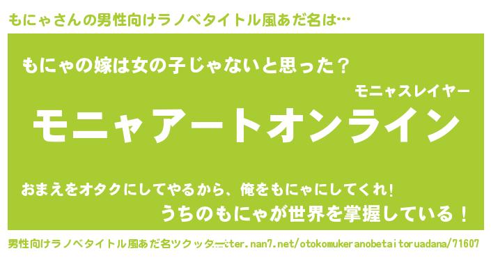 | 女子向けラノベタイトル風あだ名 | 『誰かこのもにゃを説明してください! ~契約から始まるウェディング~』 |