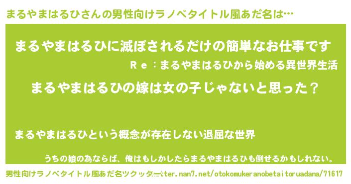 | 意味不明あだ名 | 『とにかく怪しいまるやまはるひ』 |