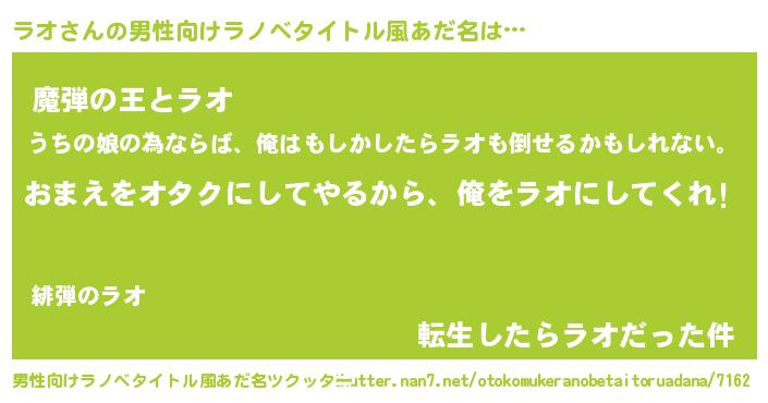| 女子向けラノベタイトル風あだ名 | 『ラオ夫妻のなれそめ』『ラオの婚約者』 |