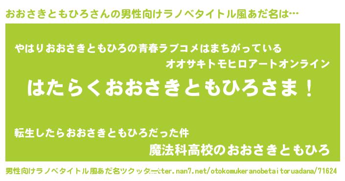 | 胡散臭い通販商品みたいなあだ名 | 『幸せが訪れる高級そうな絵画…その名も「おおさきともひろ」』 |