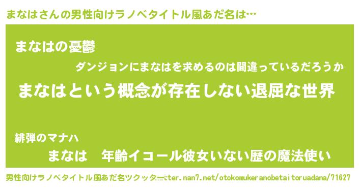 まなはさんの男性向けラノベタイトル風あだ名をツクッター!