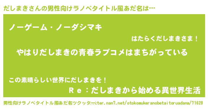 | 女子向けラノベタイトル風あだ名 | 『だしまきの雑貨屋さん』『闇のだしまき』 |