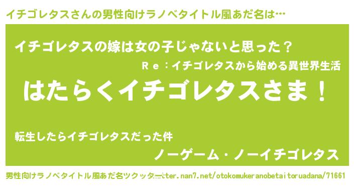 | 女子向けラノベタイトル風あだ名 | 『首の姫と首なしイチゴレタス』 |