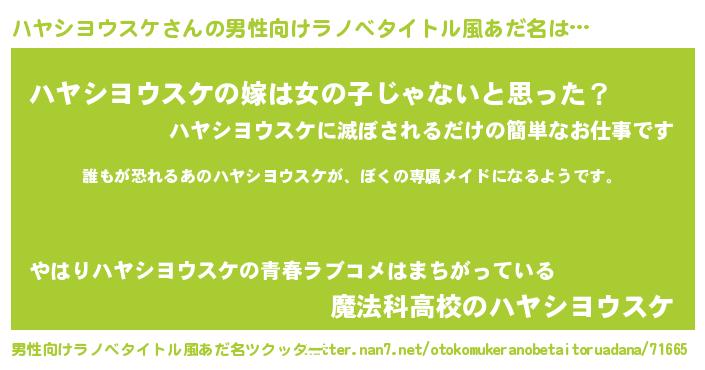 | ヒーロー風カッコイイあだ名 | 『ネオハヤシヨウスケ』『幻影騎士ハヤ』 |