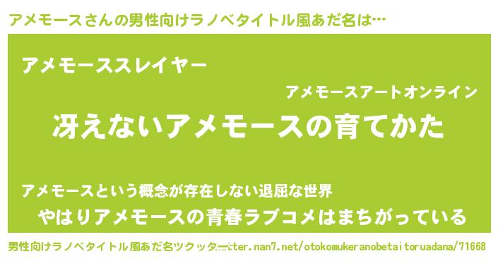 | 胡散臭い通販商品みたいなあだ名 | 『世界が平和になる高級そうな絵画…その名も「アメモース」』 |