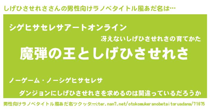 | 伝説のあだ名 | 『不死鳥の竜騎士しげひさせれさ』 |