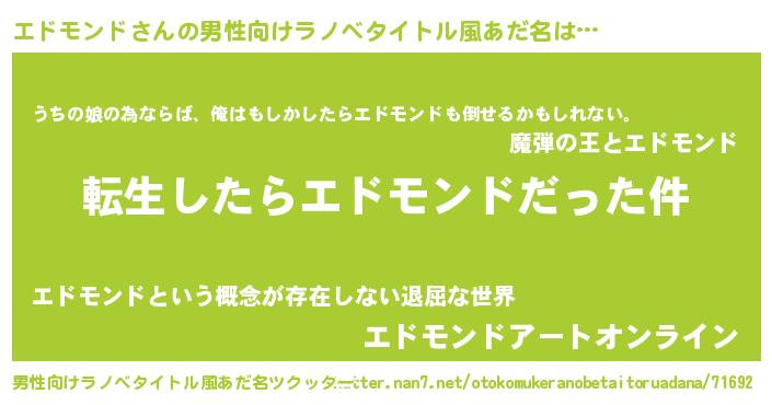| 意味不明あだ名 | 『たけのこ科エドモンド属』 |