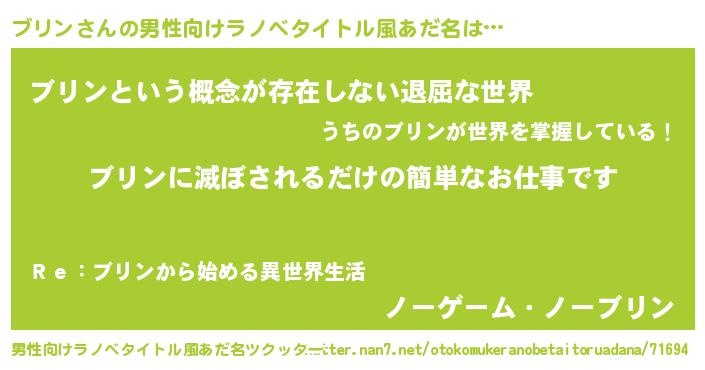 | ヒーロー風カッコイイあだ名 | 『ネオブリン』『正義の使者ブリン』 |