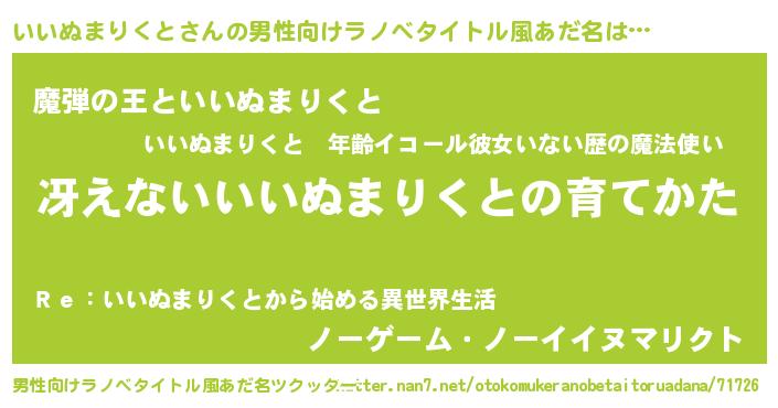 | 女子向けラノベタイトル風あだ名 | 『男装いいぬまりくとの憂鬱な任務』 |