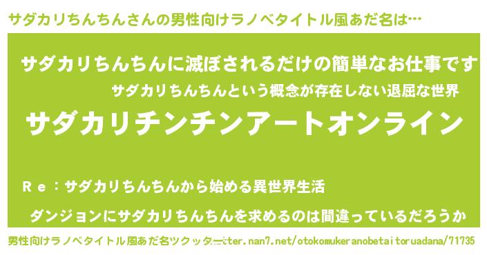 | 胡散臭い通販商品みたいなあだ名 | 『億万長者になれる水晶球…その名も「サダカリちんちん」』 |