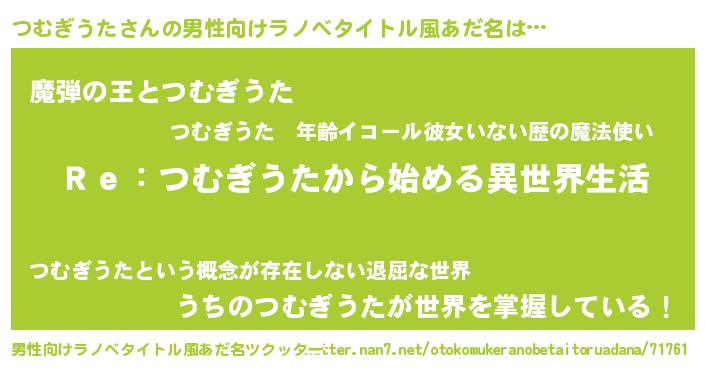 | 女子向けラノベタイトル風あだ名 | 『闇のつむぎうた』 |
