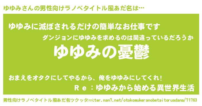 | 胡散臭い通販商品みたいなあだ名 | 『モテモテ間違いなしブレスレット…その名も「ゆゆみ」』 |