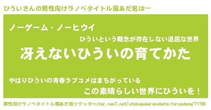 | ヒーロー風カッコイイあだ名 | 『慈愛の使者ひうい』『仮面ヒウダー』 |