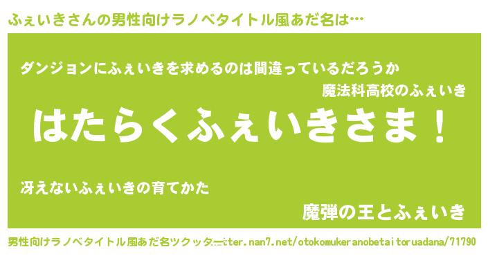 | ファンタジー風あだ名 | 『ファントムフェス』『ヴァルフェーナ』 |