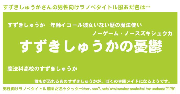 | ヘコむあだ名 | 『すずにー』『すずきしゅうか(爆)』 |