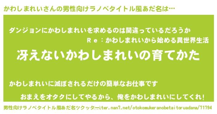 | 胡散臭い通販商品みたいなあだ名 | 『伝統あるペンダント…その名も「かわしまれい」』 |