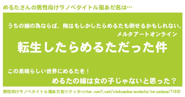 | 胡散臭い通販商品みたいなあだ名 | 『世界が平和になる高級そうな壺…その名も「めるた」』 |