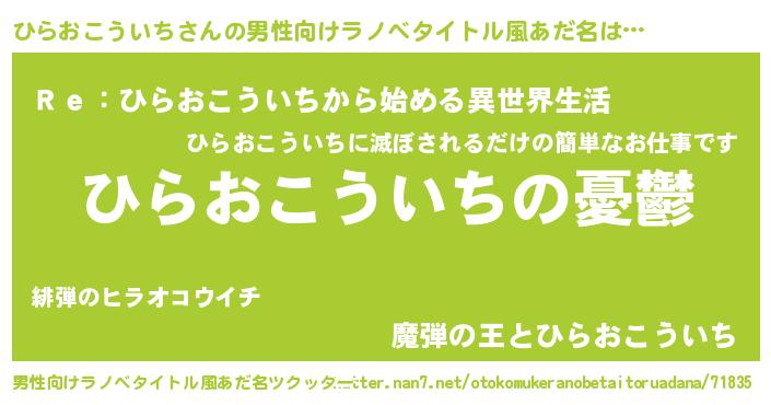 | 女子向けラノベタイトル風あだ名 | 『(仮)ひらおこういちのやんごとなき事情』 |