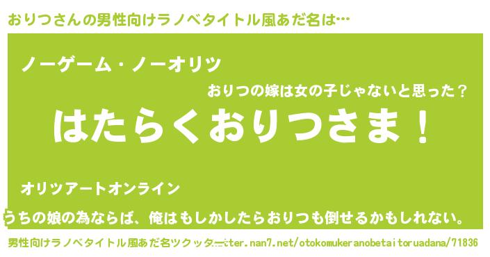 | 胡散臭い通販商品みたいなあだ名 | 『100人中100人が認めたマグネット磁石…その名も「おりつ」』 |