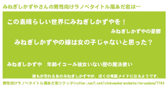 | 料理風あだ名 | 『ポテトとみねぎしかずやのキッシュ☆』 |