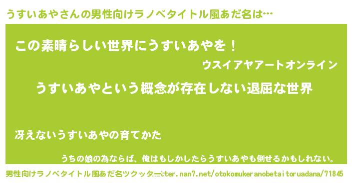 うすいあやさんの男性向けラノベタイトル風あだ名をツクッター!