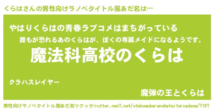 | 女子向けラノベタイトル風あだ名 | 『くらはなんてお断りですっ。』 |