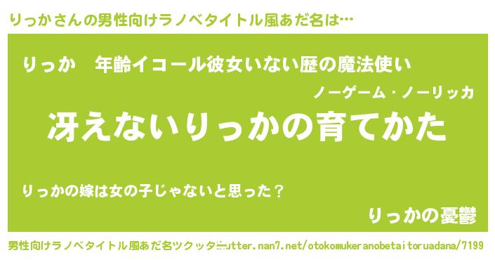 | 女子向けラノベタイトル風あだ名 | 『シンデレラりっか家の靴箱館』 |