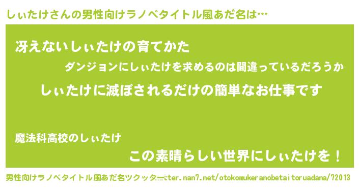 | 意味不明あだ名 | 『住所不定無職しぃたけ(84歳)』 |