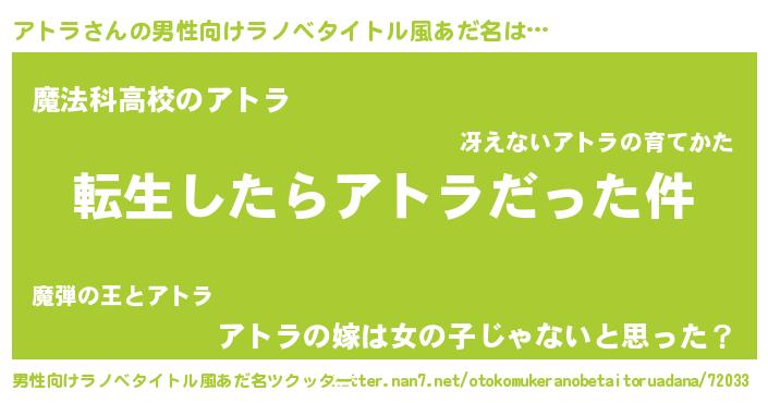 | ヒーロー風カッコイイあだ名 | 『最強戦士アトラ』『天弓騎士アト』 |