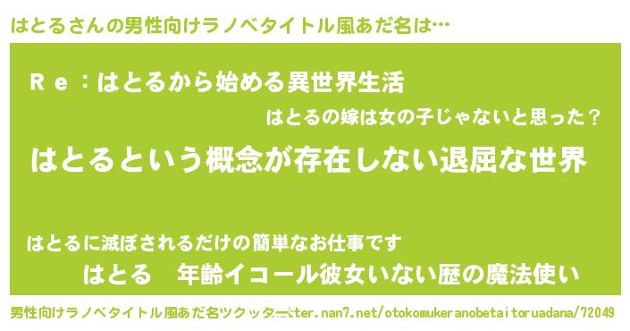 | ヘコむあだ名 | 『はとる(苦笑)』『はとっぺ』 |