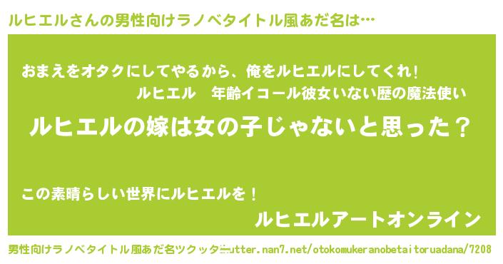 | 女子向けラノベタイトル風あだ名 | 『ルヒエル様がみてる』 |
