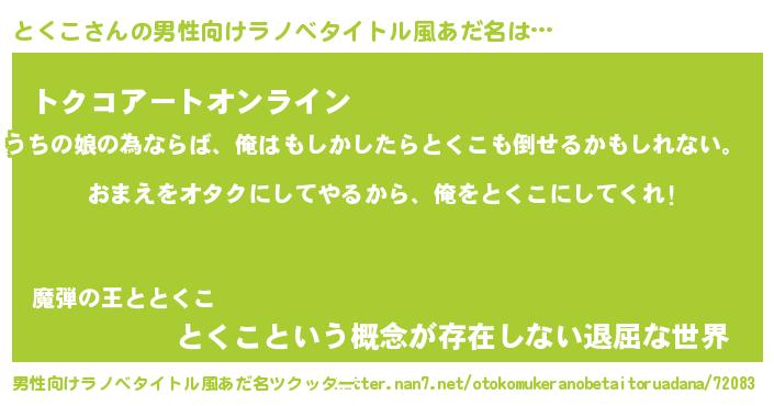 | 胡散臭い通販商品みたいなあだ名 | 『100人中100人が認めたマグネット磁石…その名も「とくこ」』 |