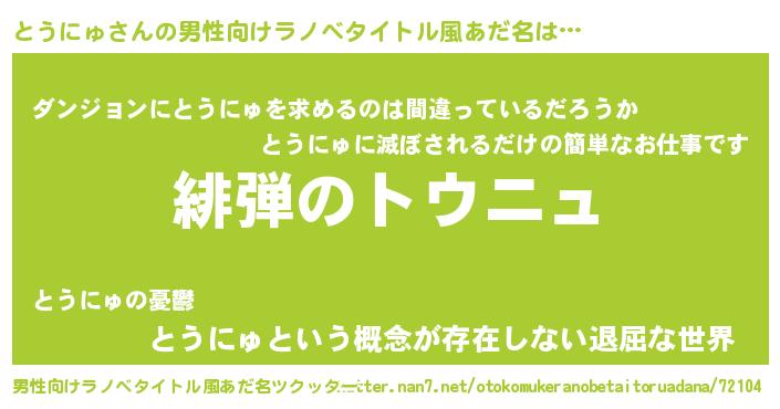 | 意味不明あだ名 | 『とにかく怪しいとうにゅ』 |
