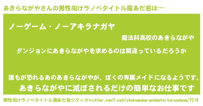 | 胡散臭い通販商品みたいなあだ名 | 『信頼と実績のネックレス…その名も「あきらながや」』 |