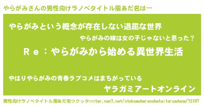 | ヘコむあだ名 | 『やらがみ(苦笑)』『やらふぇ~』 |
