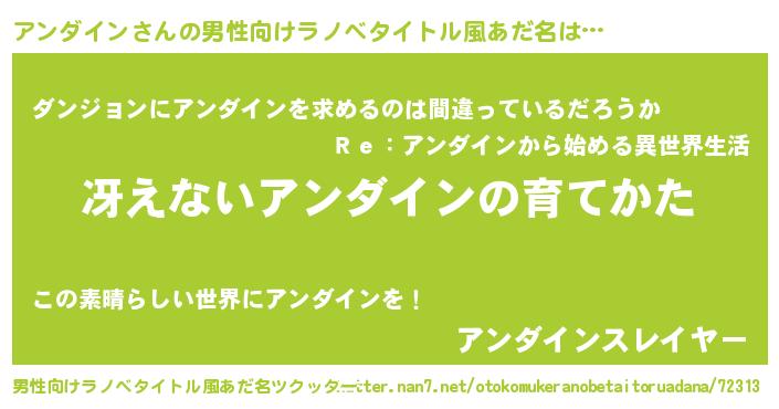 | 意味不明あだ名 | 『とにかく怪しいアンダイン』 |