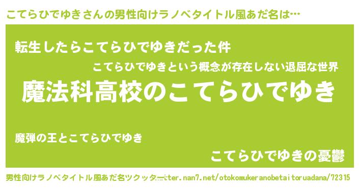 | 女子向けラノベタイトル風あだ名 | 『こてらひでゆきなんてお断りですっ。』 |