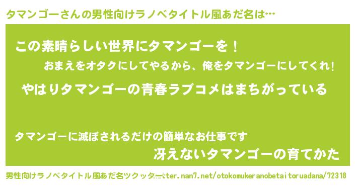 | 意味不明あだ名 | 『タマンゴーフォーエバー』 |