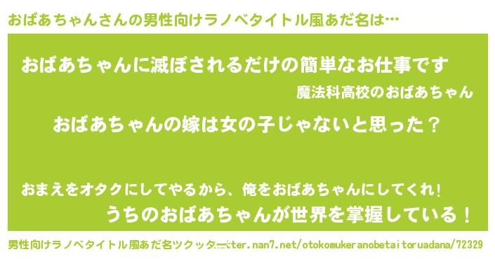 | 女子向けラノベタイトル風あだ名 | 『おばあちゃん様がみてる』 |