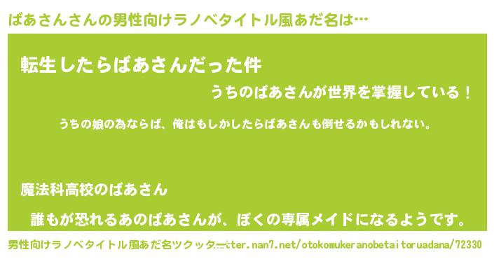 | ヒーロー風カッコイイあだ名 | 『ウルトラばあさんマン』『ネオバアサン』 |