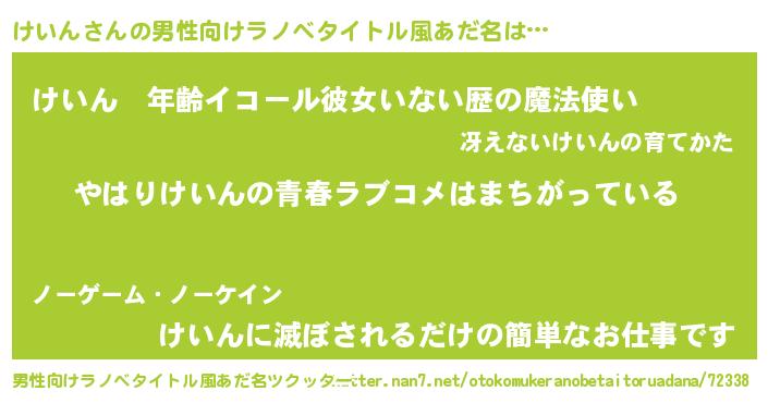 | ヘコむあだ名 | 『豆乳』『けいん(遠い目)』『けいお』 |