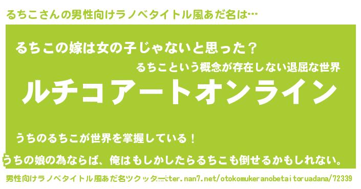 | 女子向けラノベタイトル風あだ名 | 『誰かこのるちこを説明してください! ~契約から始まるウェディング~』 |