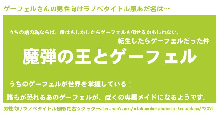 | 意味不明あだ名 | 『住所不定無職ゲーフェル(3歳)』 |