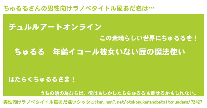 | 胡散臭い通販商品みたいなあだ名 | 『億万長者になれるブレスレット…その名も「ちゅるる」』 |