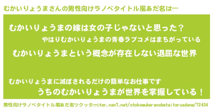 | 女子向けラノベタイトル風あだ名 | 『むかいりょうまの契約王妃』 |