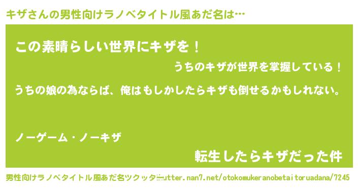 | 女子向けラノベタイトル風あだ名 | 『キザの婚約者』『男装キザの憂鬱な任務』 |