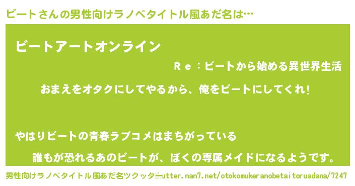 ビートさんの男性向けラノベタイトル風あだ名をツクッター!