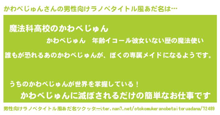 | 女子向けラノベタイトル風あだ名 | 『かわべじゅんの契約王妃』 |