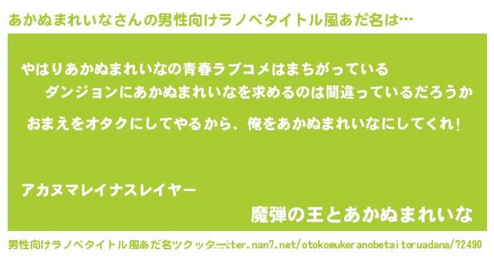 | 女子向けラノベタイトル風あだ名 | 『あかぬまれいな恋絵巻』 |